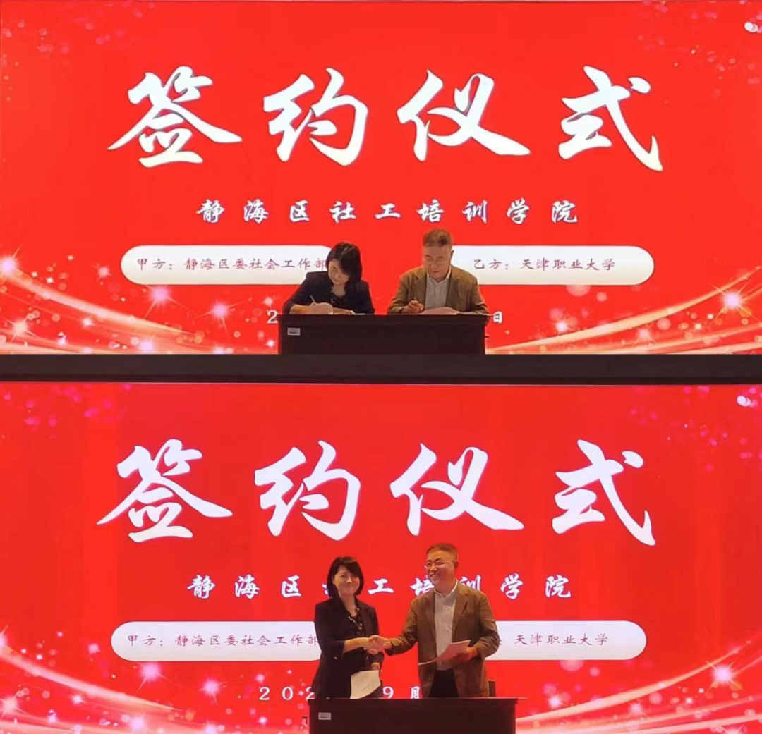 首先,冯艳文副校长和郑平书记共同为“静海区社工培训学院”和“KY开元集团官网入口静海社工实训基地”揭牌,静海区社工培训学院正式成立,标志着KY开元与静海区委社工部的合作迈向新台阶。王昆院长与孟玲玲部长共同签署了合作协议书。