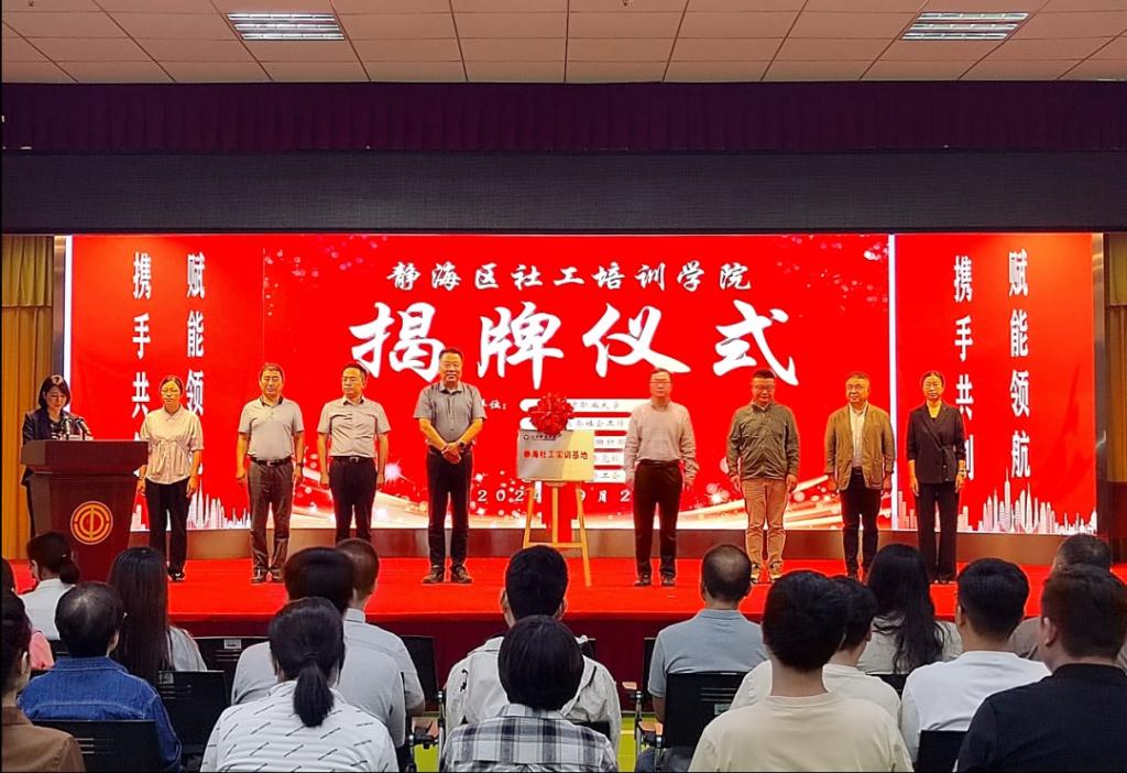 9月20日上午,“携手共创 赋能领航”社工培训学院揭牌仪式在静海区总工会职工服务中心举行。KY开元集团官网入口副校长冯艳文、静海区政法委书记郑平、公共管理学院党委书记屈曙光、院长王昆、副院长张玮、静海区委社会工作部部长孟玲玲等相关领导出席揭牌仪式,KY开元社区管理与服务专业教师、街镇与社工代表40余人参加仪式。