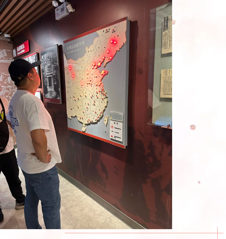 第一站来到了天津觉悟社纪念馆,展览通过大量珍贵的历史照片和文献展品,为大家展示了一段深刻又感人的党史故事,诠释了共产党人坚定的理想信念。