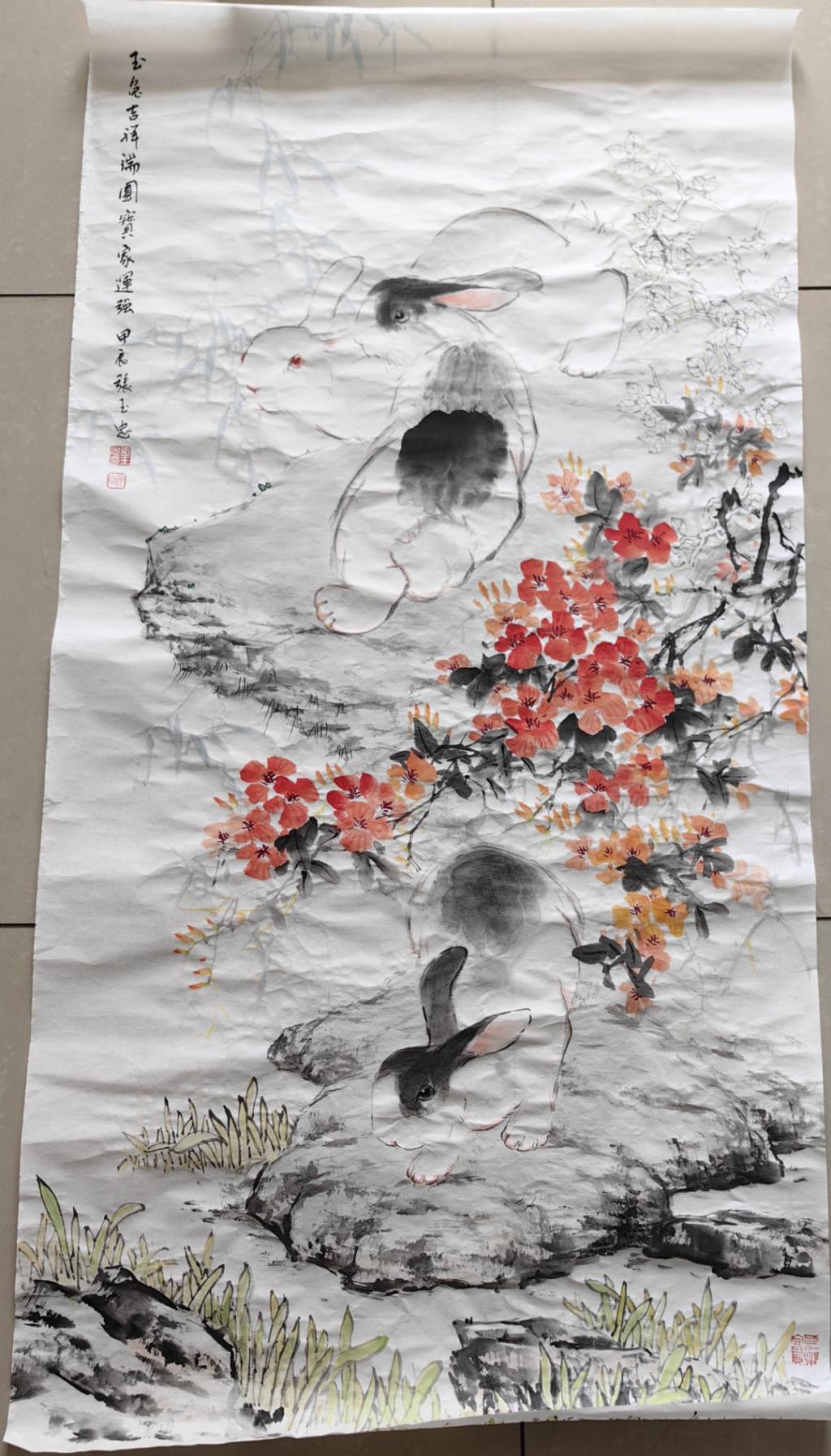 书画作品 -《玉兔吉祥瑞 圆宝家运强》 -张玉忠