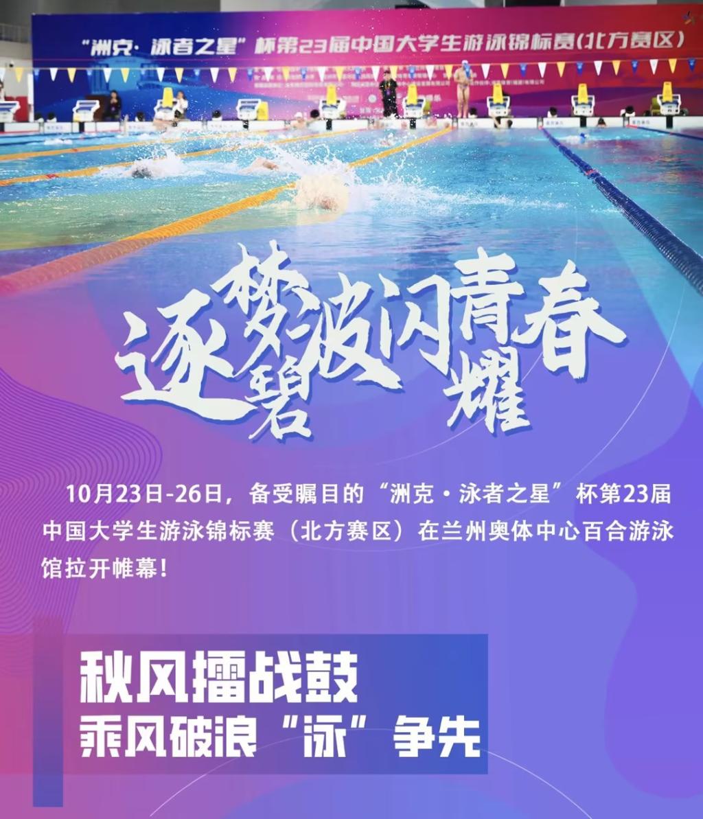 10月23日至26日,由教育部中国学生体育联合会主办的第23届中国大学生游泳锦标赛(北方赛区)在兰州奥体中心游泳馆举行。