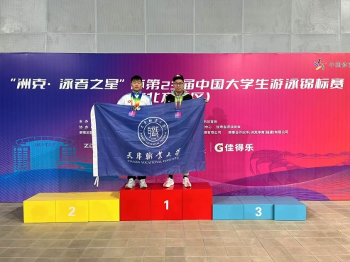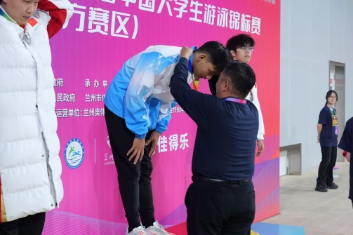 学校选派体育部李景蔚老师担任教练员,指导和带领学生参加此项赛事。经过赛前的积极备战和比赛中的良好发挥,最终摘得高职男子组50米自由泳桂冠和50米蝶泳季军,顺利晋级全国总决赛。