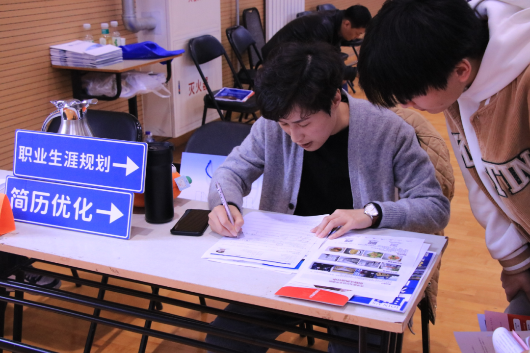 在招聘会的一角,就业指导服务台被围得水泄不通,就业服务站的指导老师正忙着为毕业生提供简历修改建议、面试技巧指导以及职业规划咨询。他们耐心倾听学生的困惑,用丰富的经验和专业的知识给予解答,帮助学生更好地认识自我,明确职业方向。