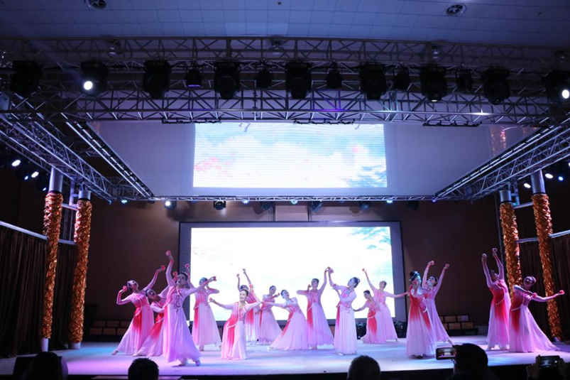 接下来由天津市老年人大学学员带来的民族舞蹈——《细雨流光》为我们带来全新的视听享受,让我们的心灵再次翱翔!舞蹈《细雨流光》是由国家一级编导指导,在北京举办的第十一届华北五省(区)市舞蹈大赛决赛中,以其独特的创意、深厚的文化内涵绽放出对美的热爱和向往,赢得了评委的高度评价,荣获金奖。表演结束现场观众受到感染,爆发出热烈的掌声。
