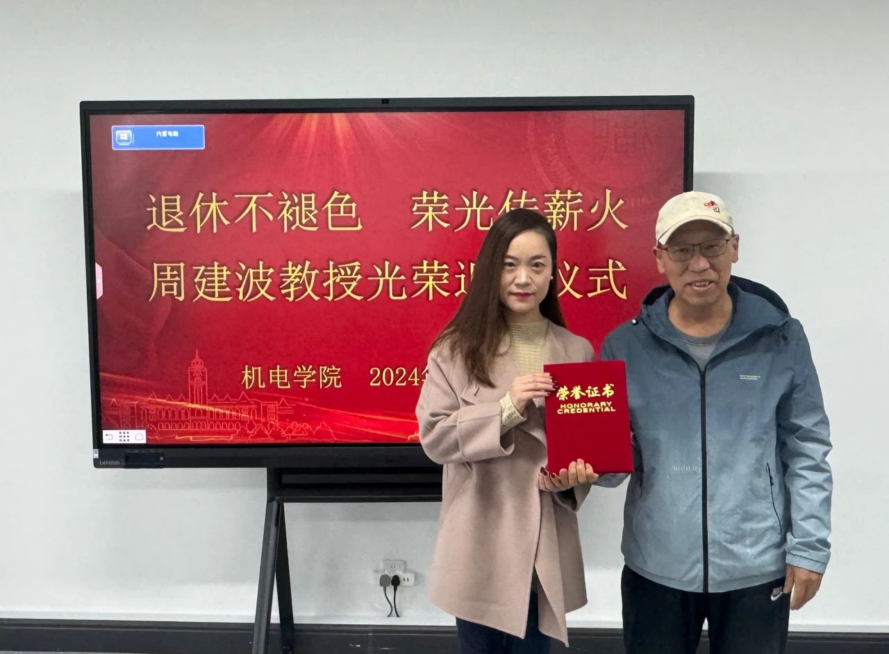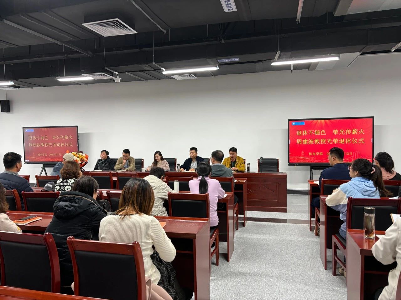 司炜书记表示,学院举行老教师荣休仪式暨新教师入职仪式旨在增强全体教职工的归属感、使命感、荣誉感。一是要感恩荣休教师长期扎根学院,坚守三尺讲坛,默默耕耘、无私奉献,为推动学院发展所作出的重要贡献;二是欢迎新教师加入机电学院大家庭,希望青年教师接过接力棒,传承师道、砥砺前行;三是勉励在职教师传承好荣休教师的优良传统,主动帮助新教师融入学院、快速成长,希望老中青三代携手并肩,为开创学院高质量发展作出更多更大贡献。