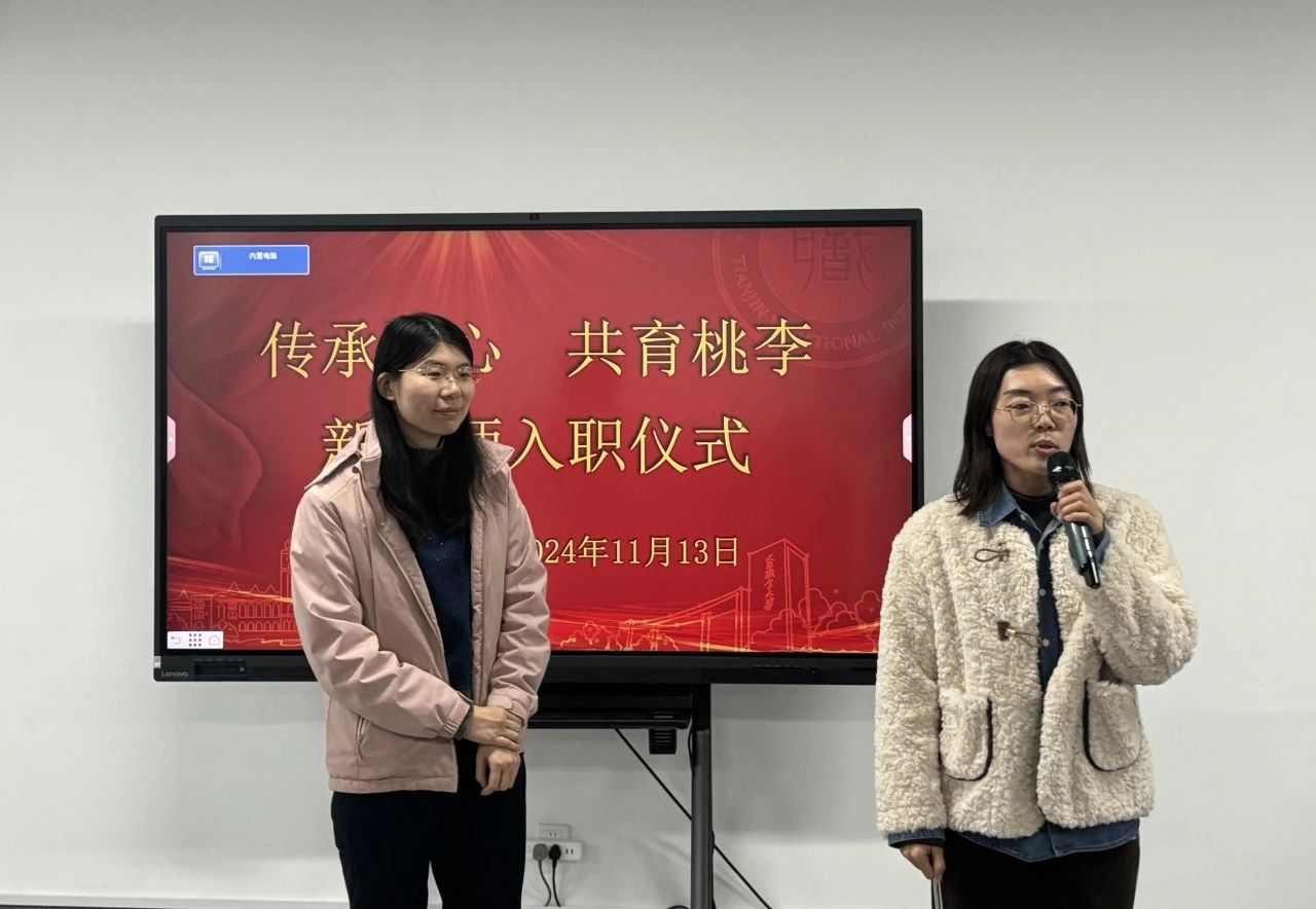 学院副院长郑士成为指导教师代表霍淑珍教授颁发聘书,霍淑珍教授寄语青年新教师,希望新教师们不仅要传授学生理论知识和专业技能,还应做到言传身教、以身作则,努力用自己优秀的道德品格和精神素养去引导学生、影响学生,帮助学生树立正确的世界观、人生观和价值观。新进教师梁小夏老师、韩笑老师发表入职感言,两位新教师表示,要始终做到不忘教书育人初心,争做“四有”好老师,牢记立德树人使命,不断提升教学科研水平,为学院的发展贡献力量。