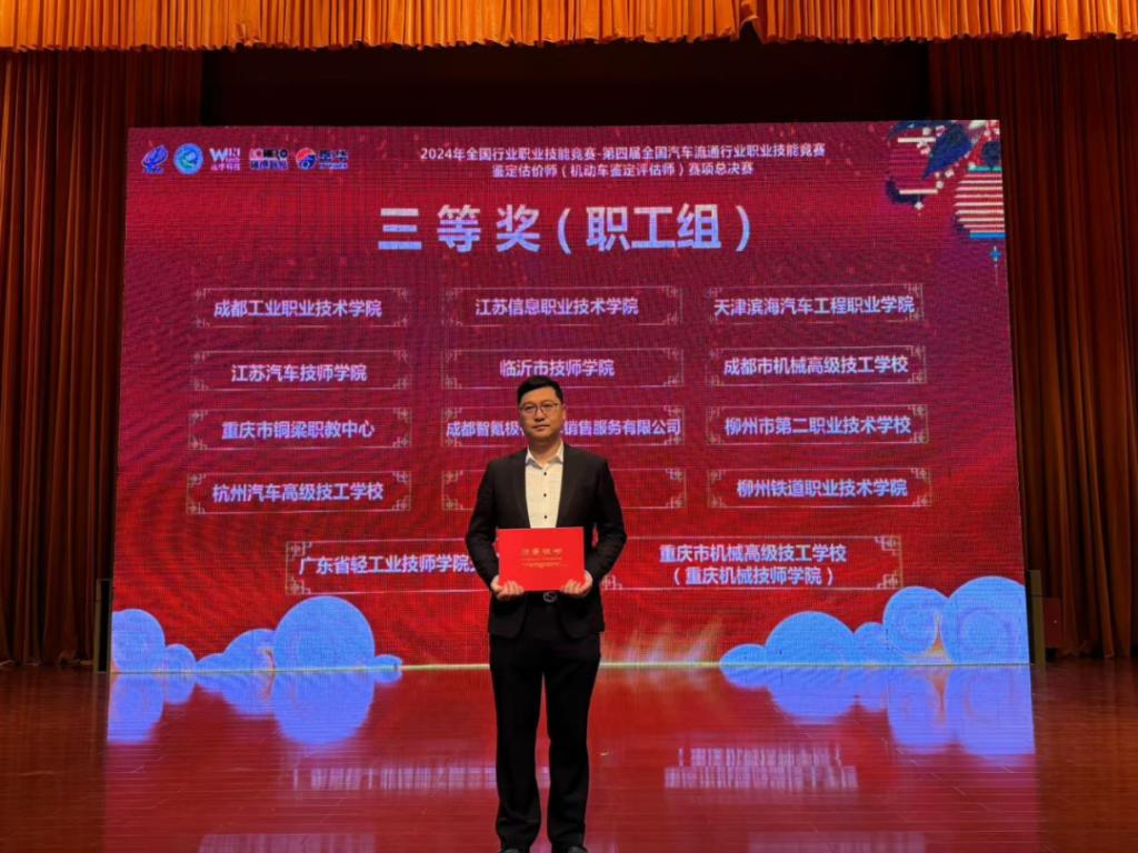 通过二手车鉴定评估和二手车销售两个模块激烈的角逐,KY开元汽车工程学院王锦昆老师获得鉴定评估师(职工组)三等奖,周奕凡获得鉴定评估师(学生组)二等奖,汽车工程学院学生能够在这样的高规格赛事中脱颖而出,充分展示了汽车工程学院师生扎实的专业技能。