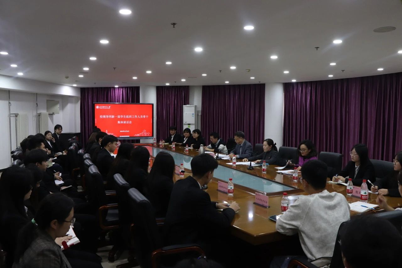 12月4日,校党委书记夏静波同新一届学生组织工作人员骨干集体谈话会在培训楼1000会议室召开,学工部、校团委相关负责同志、校院两级学生会秘书长、新一届校院两级学生会执行主席、学生团委副书记、校社管、校青协负责人共计42人参加,会议由学工部部长、校团委书记主持。