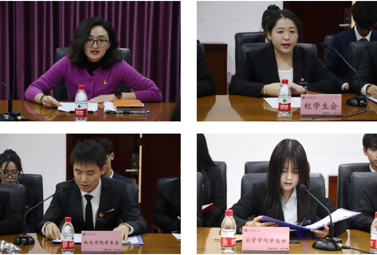 校学生会秘书长汇报了本届学生会换届情况及学生代表大会的召开情况。校学生会执行主席、机电学院学生团委副书记、公管学院学生会执行主席依次发言汇报,围绕个人工作经历、对学生骨干定位的正确认识、学生会工作重点、学生组织工作特色、下一步工作展望等方面进行交流,发言过程中突显了学生骨干锐意进取、勇立潮头的良好精神面貌,预示着学生组织良好的发展势头。