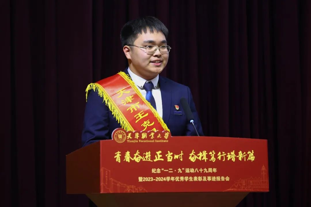 获奖学生代表国家励志奖学金、天津市“自信自强年度人物”暨天津市海河自强特等奖学金获得者经济与管理学院张孟雪同学,国家奖学金、天津市王克昌奖学金获得者机电工程与自动化学院袁梓博同学,天津市资助育人宣传大使提名奖获得者经济与管理学院武欣茹、董书言同学分别作了事迹分享;包装与印刷工程学院2023级印刷数字图文技术2班作为天津市先进学生集体代表进行成果展示。