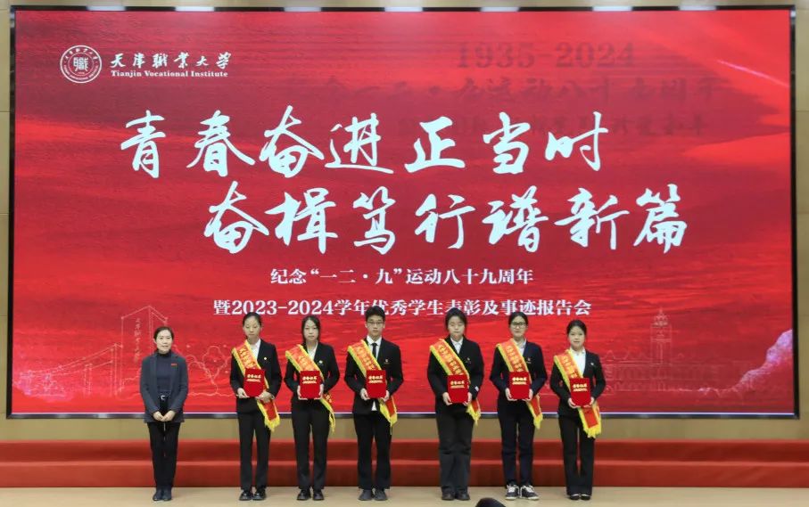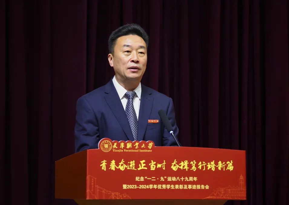 校党委学工部负责同志宣读了《KY开元集团官网入口关于表彰2023—2024学年各级各类优秀学生和集体的决定》,共有获得“国家奖学金”“国家励志奖学金”“天津市人民政府奖学金”等各级各类奖励的4799名优秀学生以及32个优秀集体受到表彰。