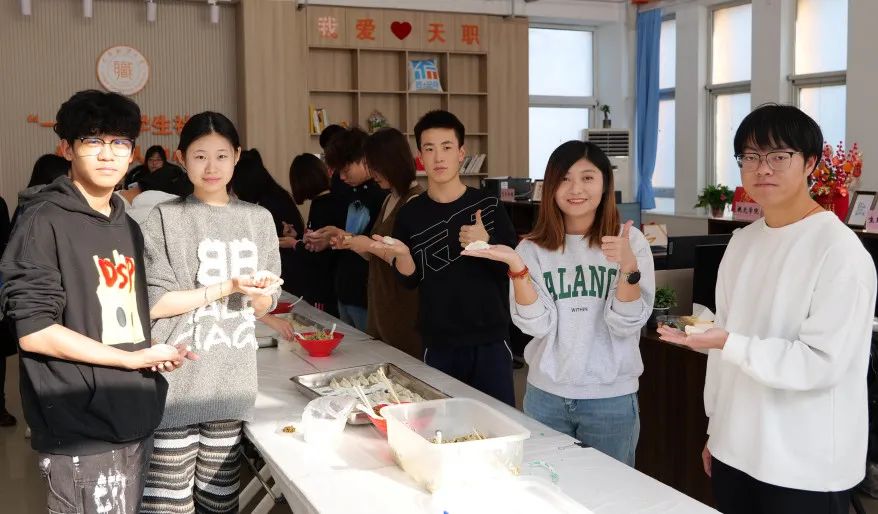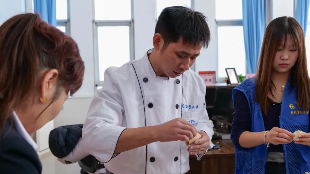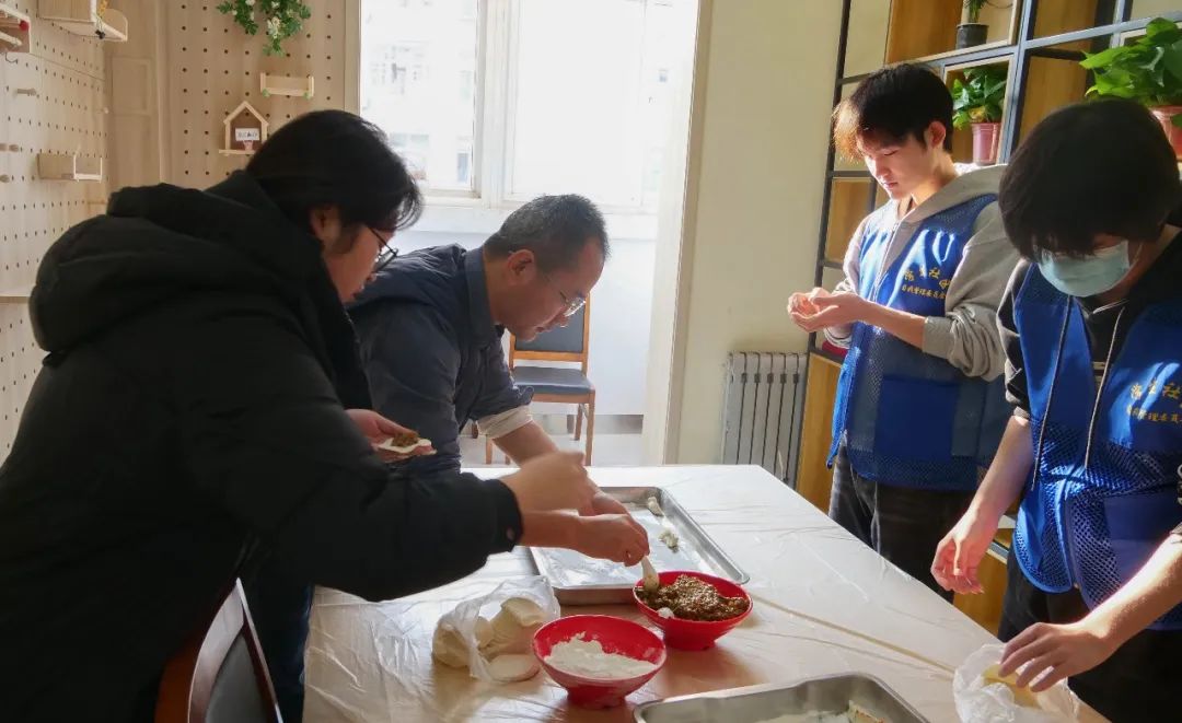 褶皱成型掌上收,面揉馅拌两悠悠。本次活动邀请了全国技术能手、天津五四青年奖章获得者、中国烹饪名师、“面食小王子”旅游学院刘辉老师,现场调制馅料、和面,并向学生演示擀皮、褶边、捻合封口等关键步骤,指导学生现场擀皮包饺子。师生们互相配合,纷纷挽起袖子投入到包饺子中,大家一起边包边唠家常、谈家乡风俗,进一步拉近了彼此的距离,也传递了KY开元学生社区的温暖与快乐。许多学生表示,这是他们第一次包饺子,虽然手法略显生疏,但在实践中感受到了包饺子的快乐、同大家在一起的温馨和传统文化的魅力。