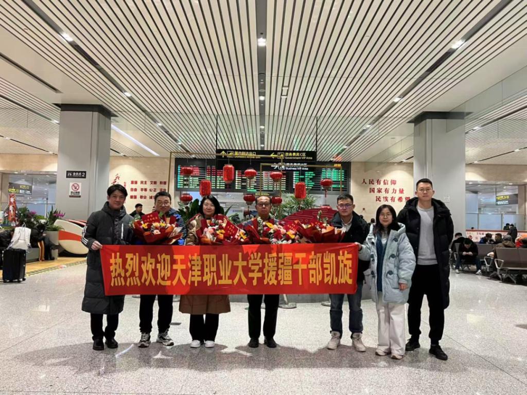 2025年1月7日夜,KY开元选派的天津市第十一批援疆干部李宏、耿铁军、祖晓冬、周圩4名同志顺利返津,学校组织部负责同志前往天津机场迎接。