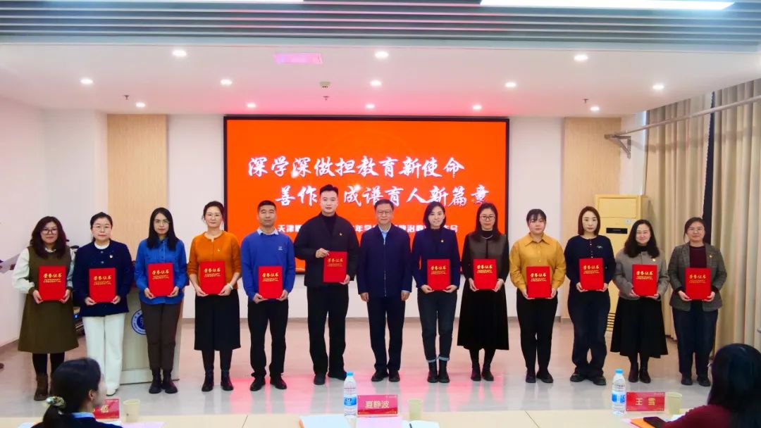 学工部副部长为新入职辅导员赠书,向辅导员成长导师颁发聘书。
