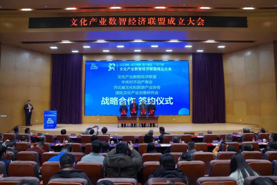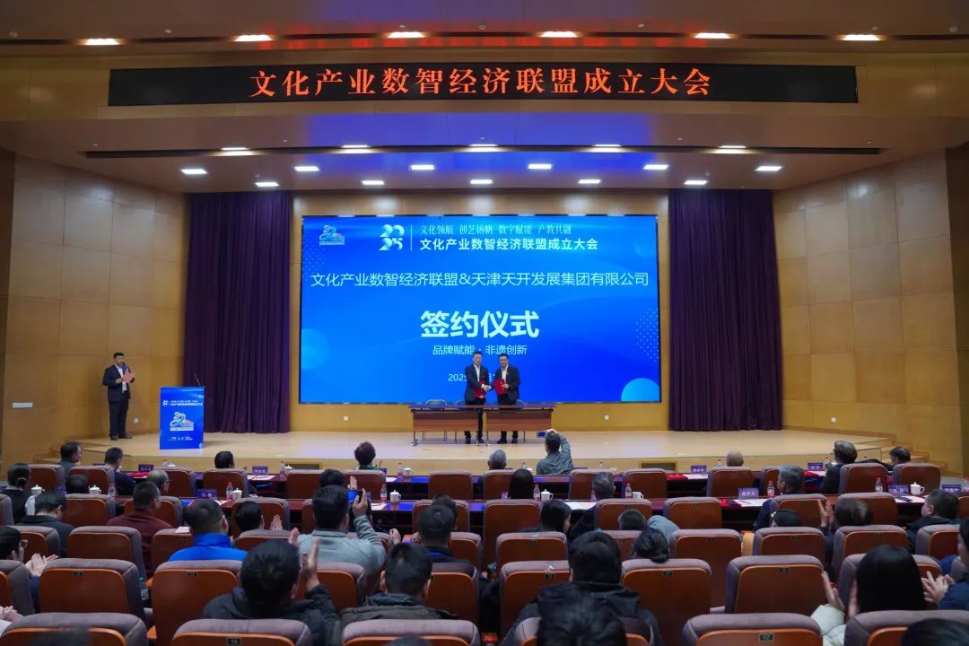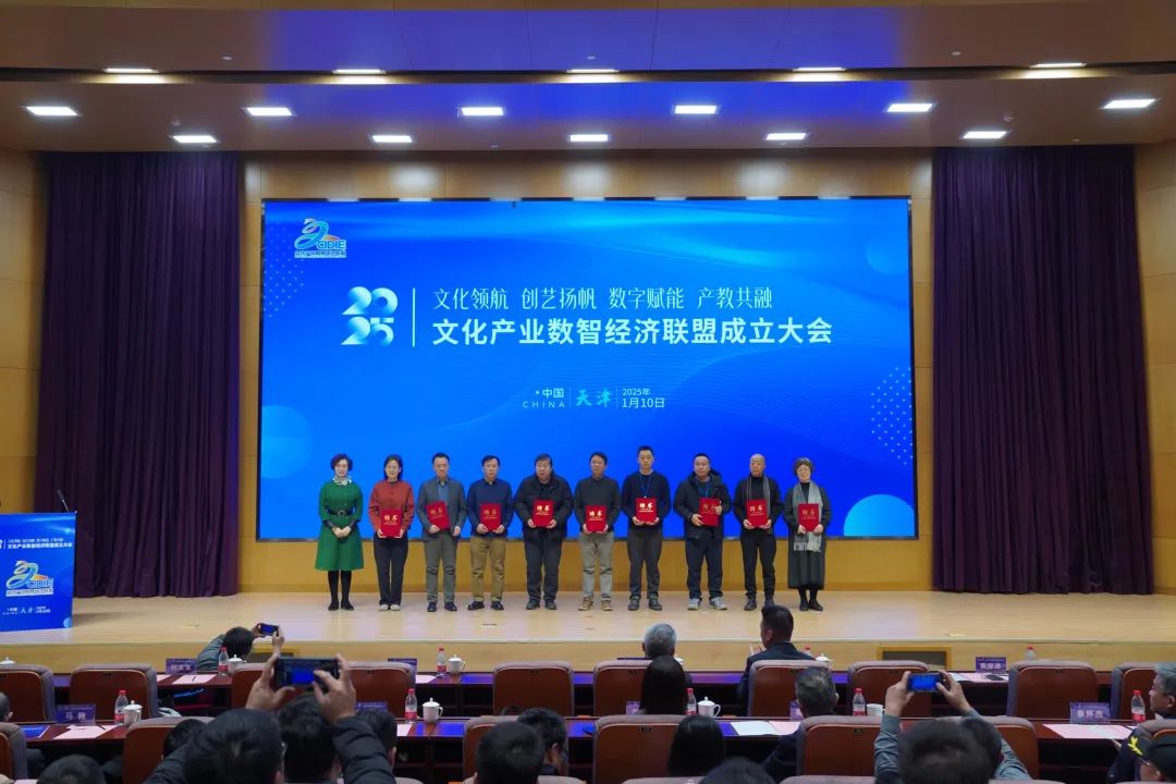 1月10日上午,文化产业数智经济联盟在KY开元集团官网入口报告厅举行成立大会。天津市教育委员会二级巡视员苏丹;中国国际教育电视台副台长于芳;KY开元集团官网入口校长吴宗保以及南开大学高迎进教授、涂俊教授;天津大学郭伟教授;天津美术学院刘文生教授、周午生教授、王一夫教授等知名专家学者及各委、办、局、文化场馆的领导和中国非物质文化遗产传承人代表,京津冀50余家文化、数智企业人士到会参加成立仪式。