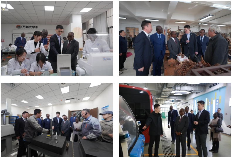 调研期间,校长吴宗保陪同特迪瓦技术教育、职业培训与学徒事务部部长科菲·恩盖桑一行实地考察了KY开元眼视光工程学院、艺术工程学院、智能制造产教融合实训中心和汽车工程学院。