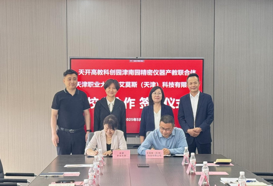 5月15日,合作办、科研处、机电学院、生环学院负责人及教师前往天津高端精密仪器产业园调研,与海教园管委会产教融合部副部长魏楠、产业园总经理李明山等深入座谈,就技术研发与成果转化、市域产教联合体建设等议题进行交流。会上,KY开元与园区企业艾莫斯(天津)科技有限公司签订产学研合作协议,将在定制化人才培养、专业人才认证、校企课题共研等方面全方位合作。