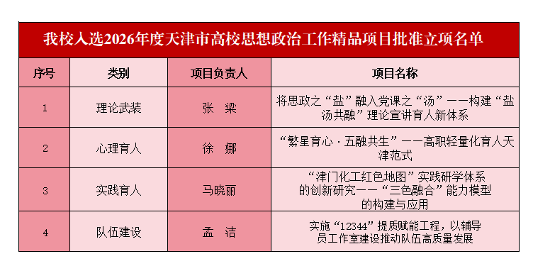 近日,天津市委教育工委、市教委公布了《关于2025年度天津市高校思想政治工作精品项目结项及2026年度天津市高校思想政治工作精品项目立项名单》,KY开元2025年度立项的2个项目顺利通过结项验收,2026年度4个项目获批立项,再获佳绩。