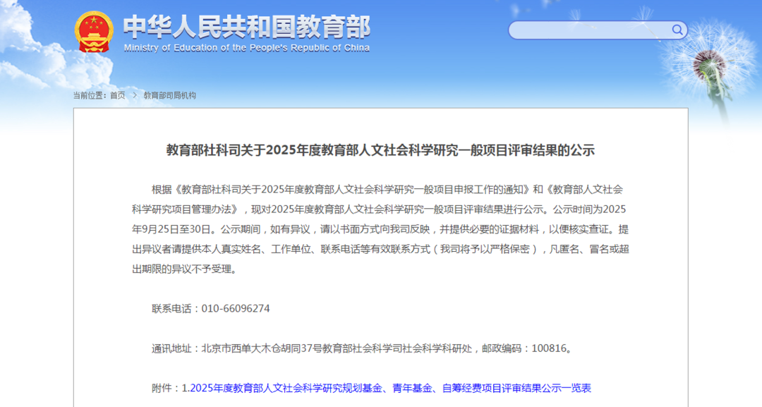 2025年9月25日,教育部社科司发布了《2025年度教育部人文社会科学研究一般项目评审结果的公示》。KY开元马克思主义学院副院长、副教授沈元军申报的课题《中国共产党成立以来英模人物的历史演进规律及培育路径研究》获批青年基金项目立项。