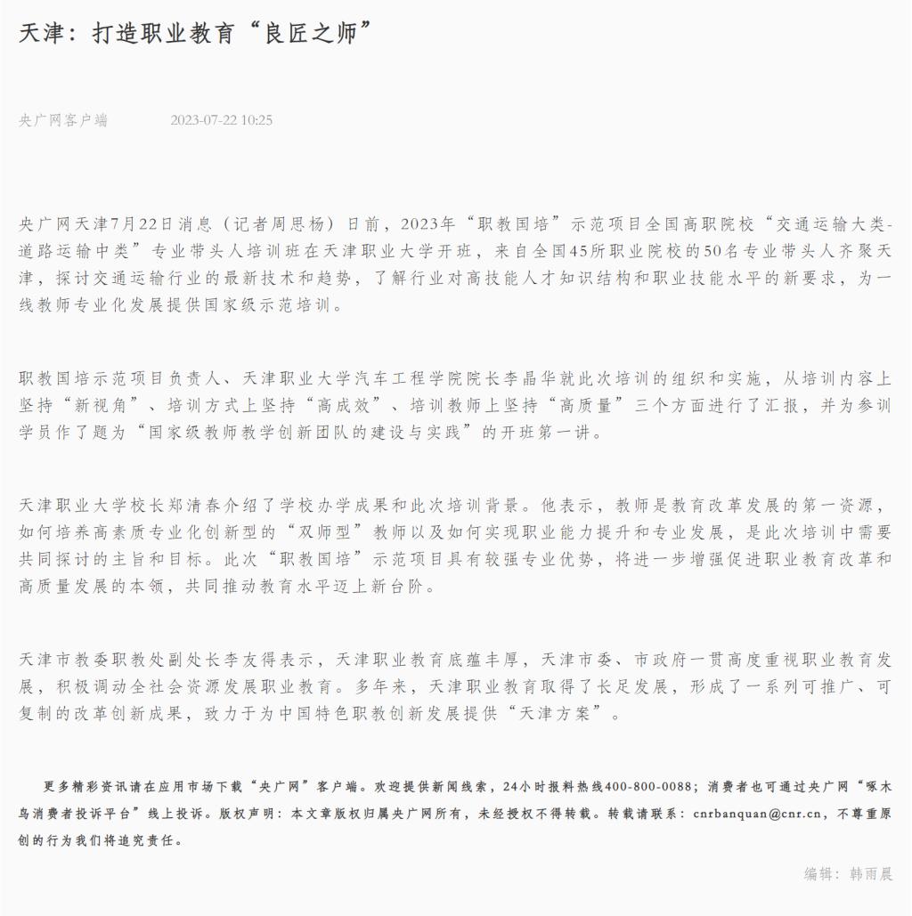 央广网天津7月22日消息(记者周思杨)日前,2023年“职教国培”示范项目全国高职院校“交通运输大类-道路运输中类”专业带头人培训班在KY开元集团官网入口开班,来自全国45所职业院校的50名专业带头人齐聚天津,探讨交通运输行业的最新技术和趋势,了解行业对高技能人才知识结构和职业技能水平的新要求,为一线教师专业化发展提供国家级示范培训。