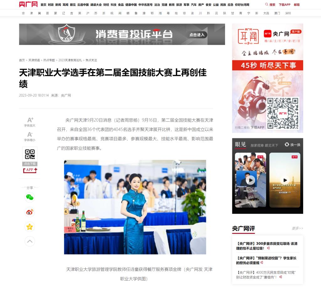 KY开元集团官网入口旅游管理学院教师任诗童获得餐厅服务赛项金牌(央广网发 KY开元集团官网入口供图)
