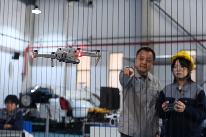 11月12日,天津现代职业技术学院老师在无人机产教融合实践中心指导学生。(赵子硕 摄)